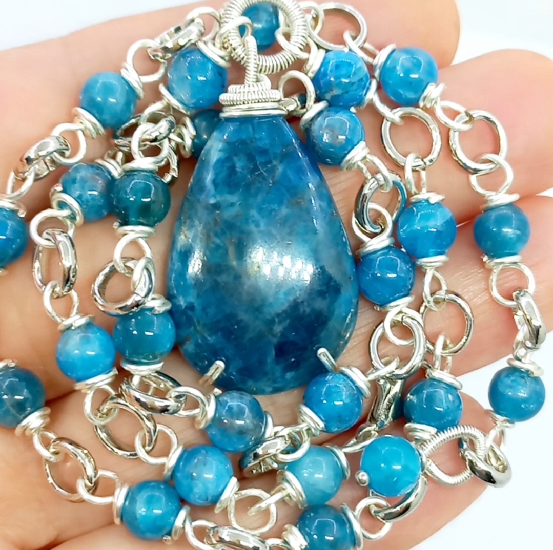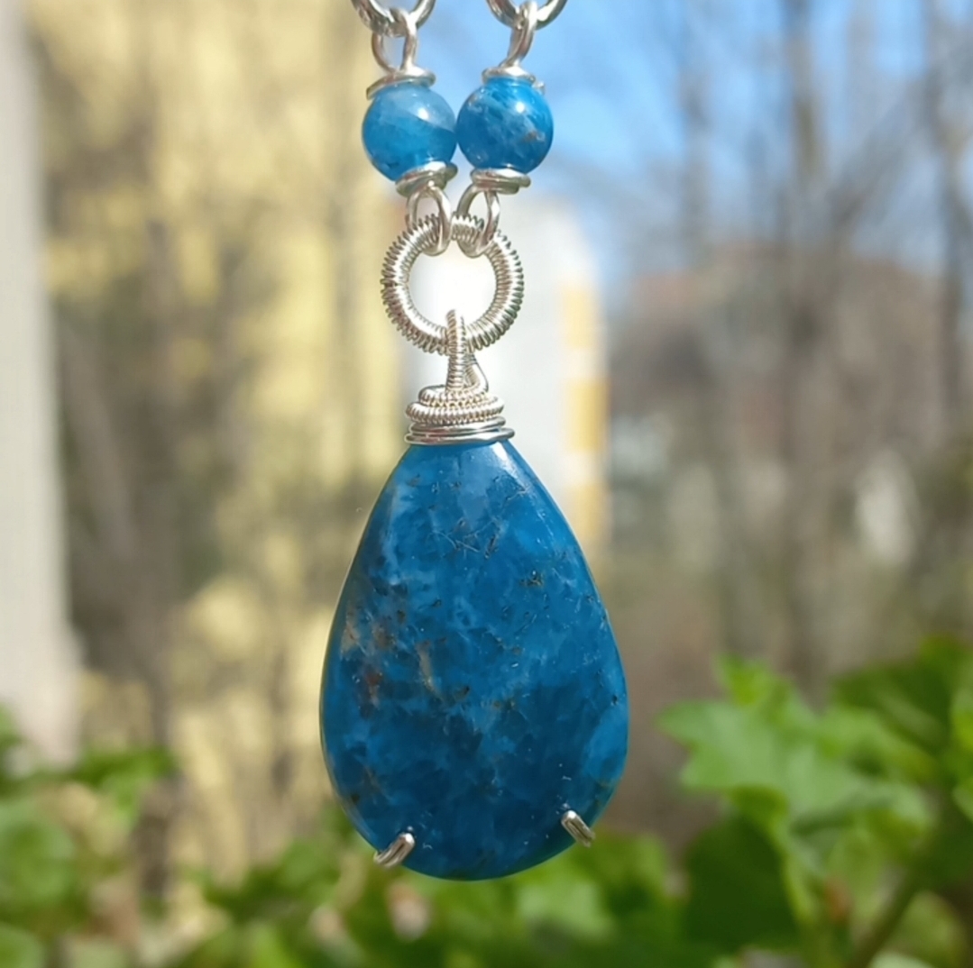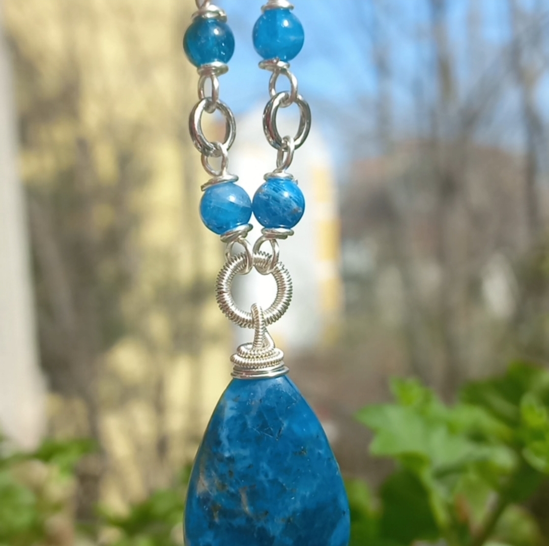 Apatit kolye uç ve Apatit taşlar, gümüş kaplama materyaller ile beraber çalışılarak tasarlanmış EL YAPIMI kolye. Sadece bir adet üretilmiştir, seçiminiz SİZE ÖZEL olacaktır.