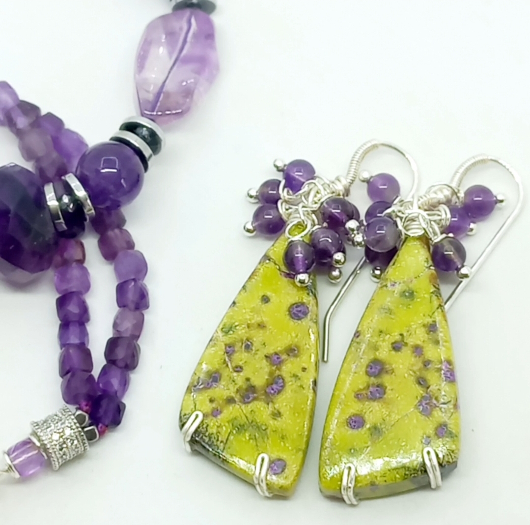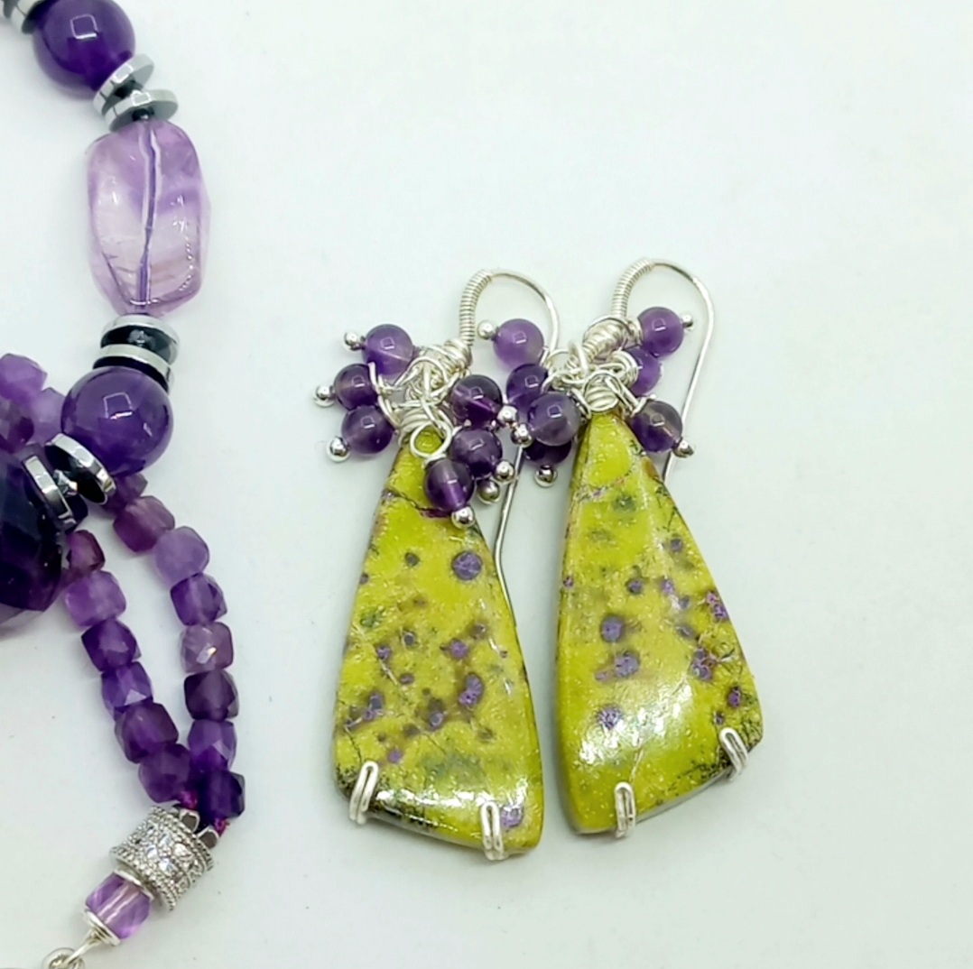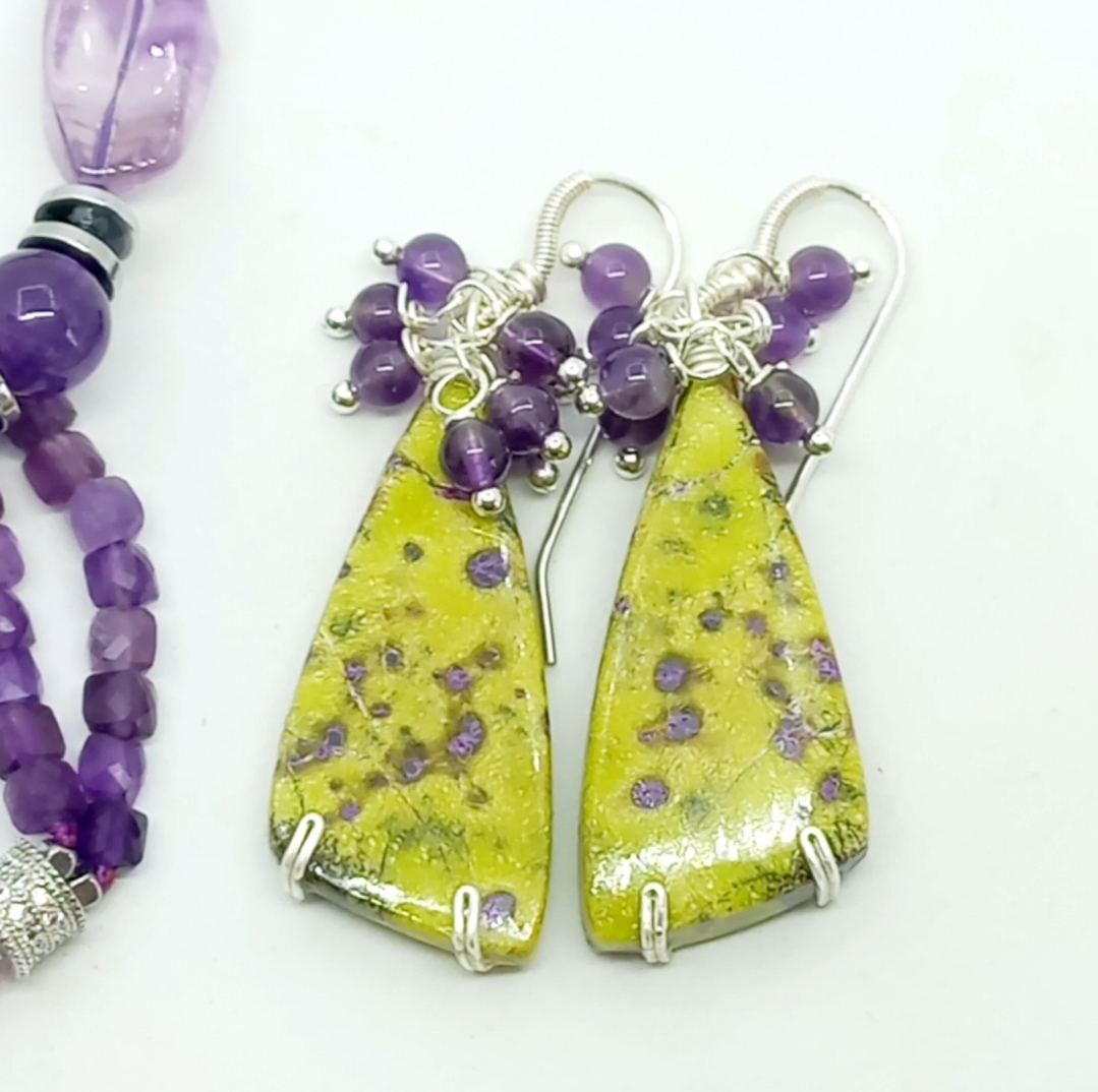 ÜRÜN KOD:2734 Atlantisit Ametist el yapımı küpe