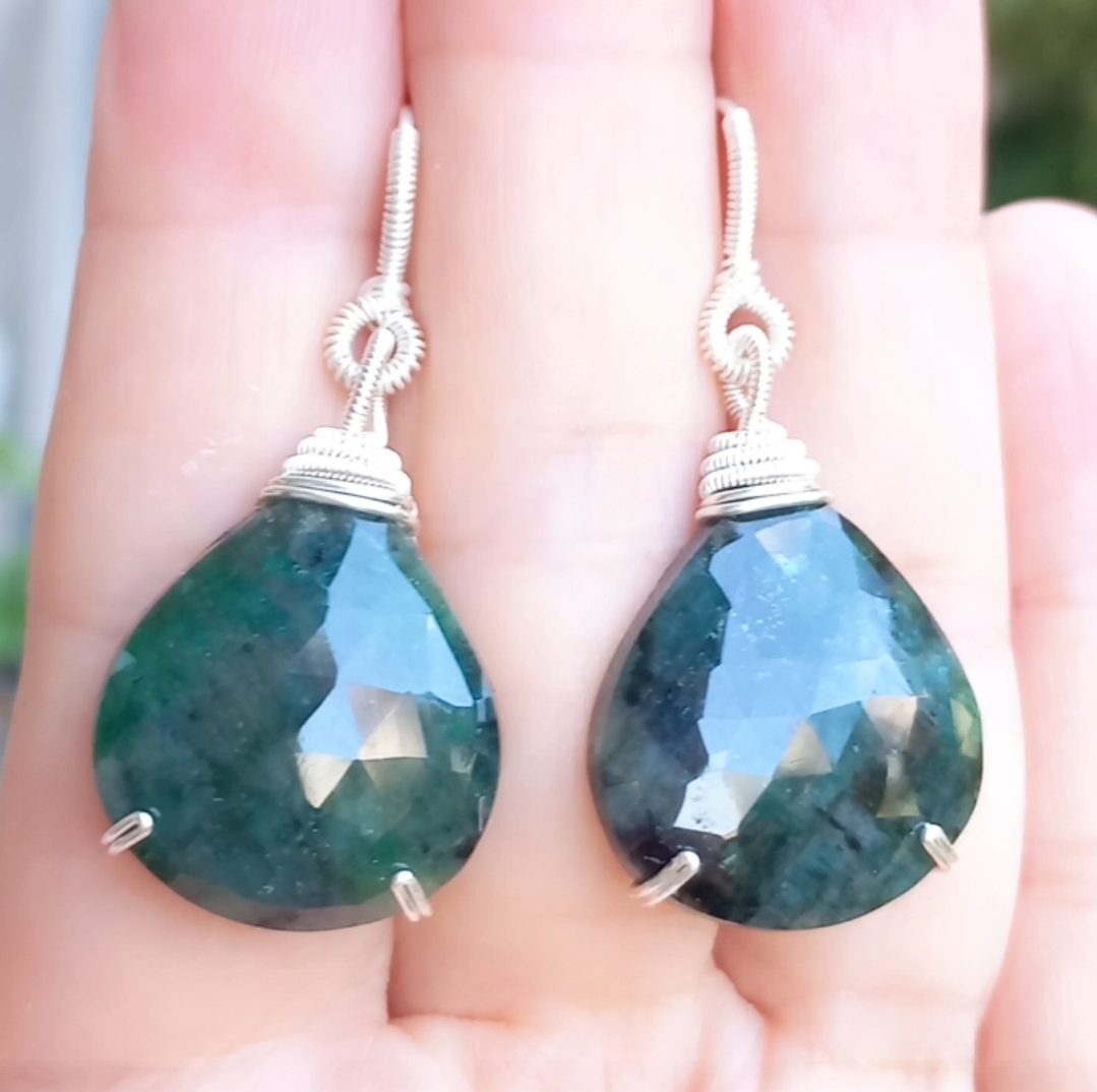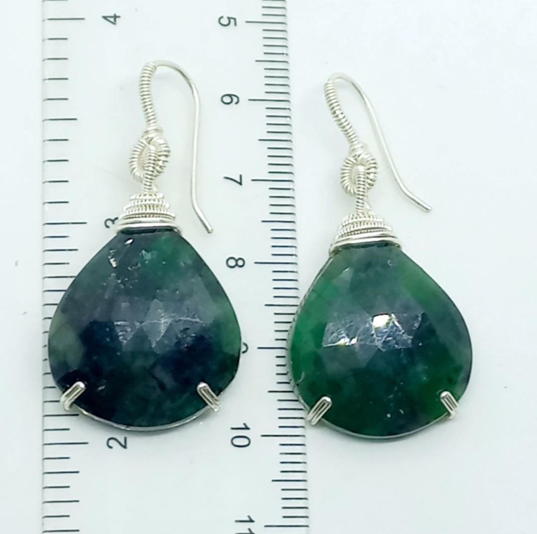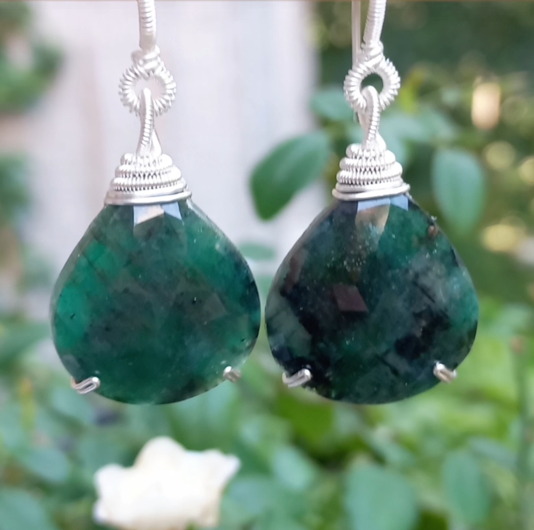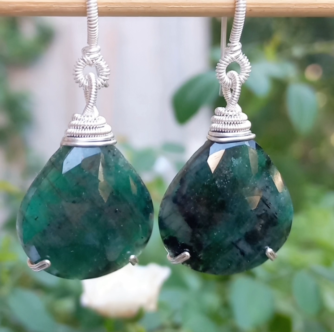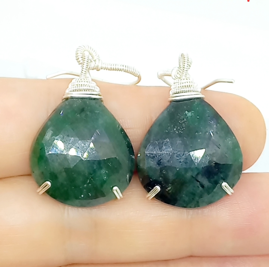 Faset kesim Zümrüt Gümüş aparatlı el yapımı küpe