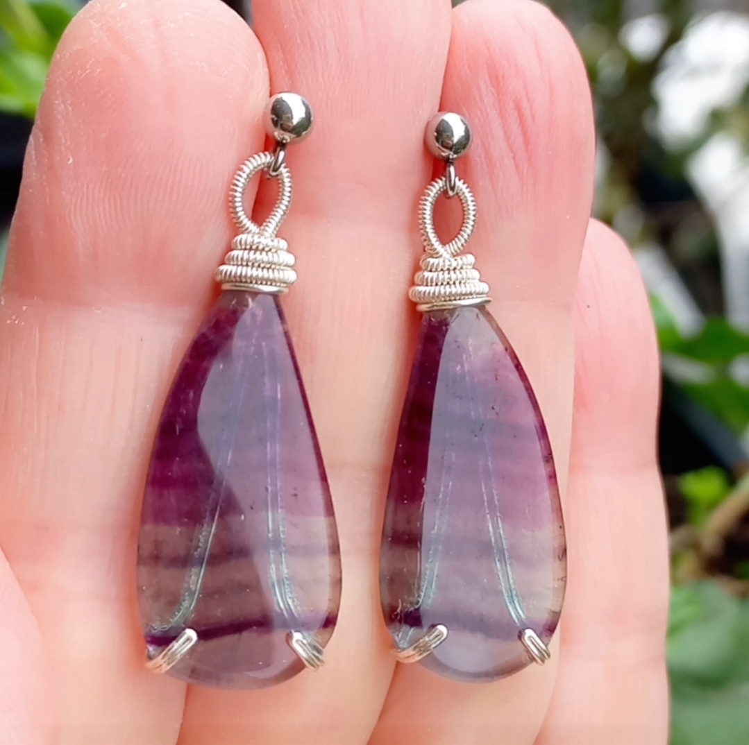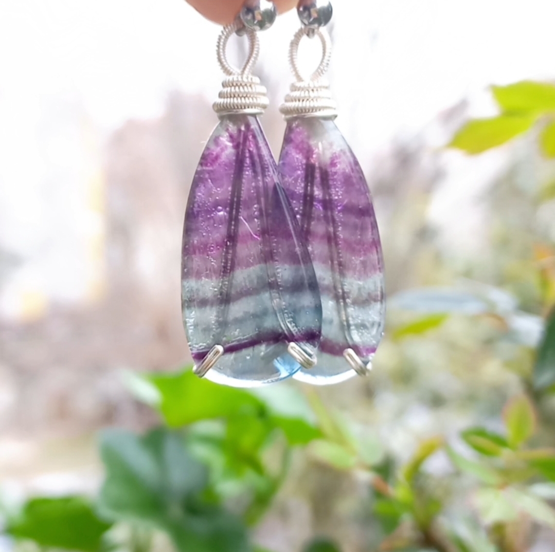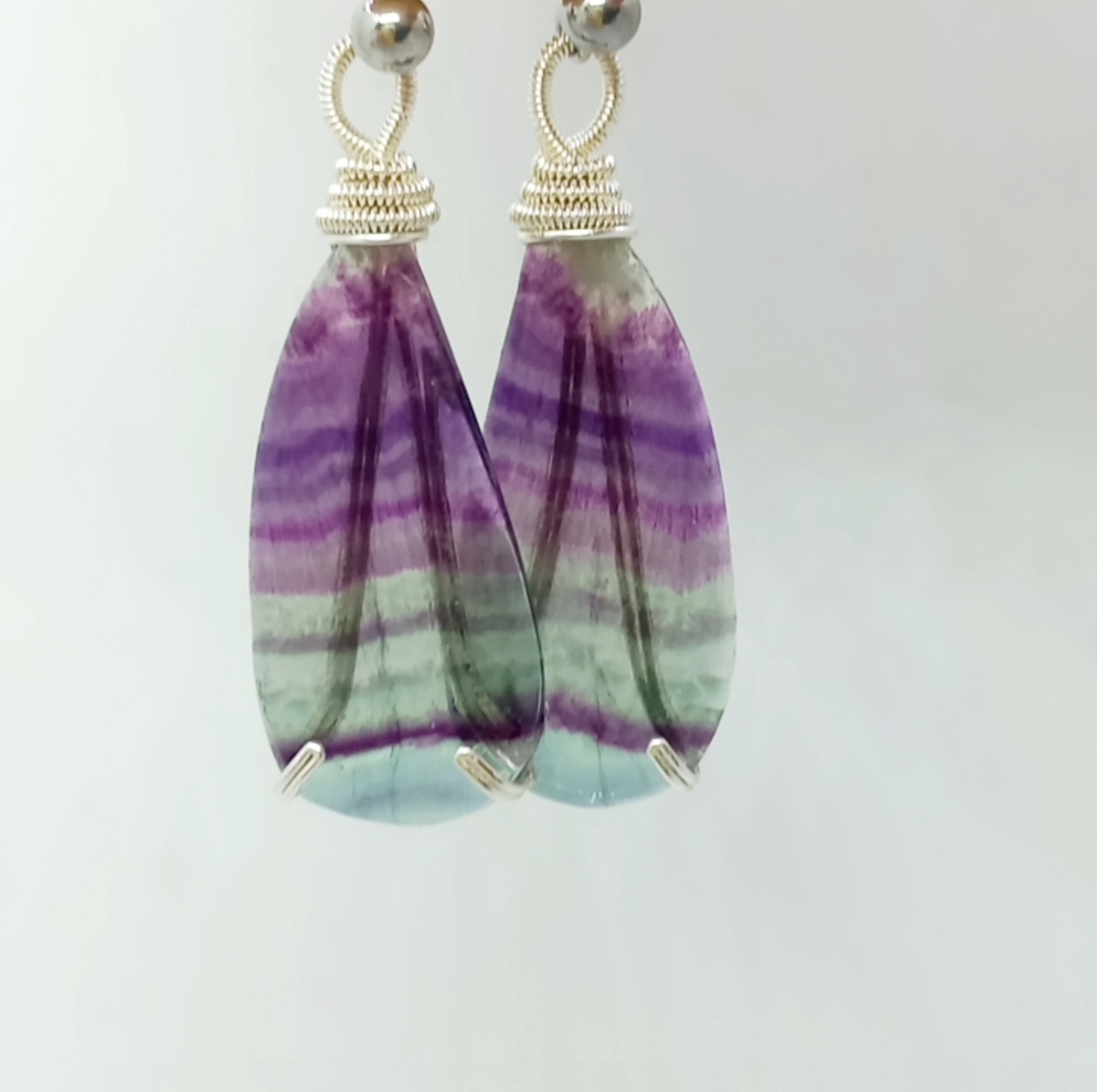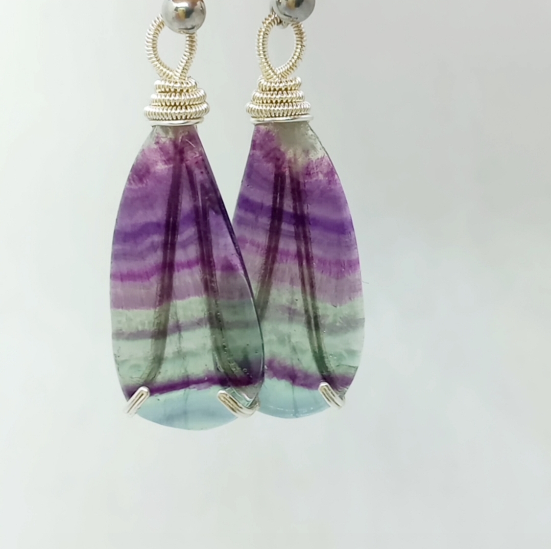 Florit küpe taşlar; çelik aparat ve gümüş kaplama materyaller ile çalışılarak tasarlanmış EL YAPIMI küpe.