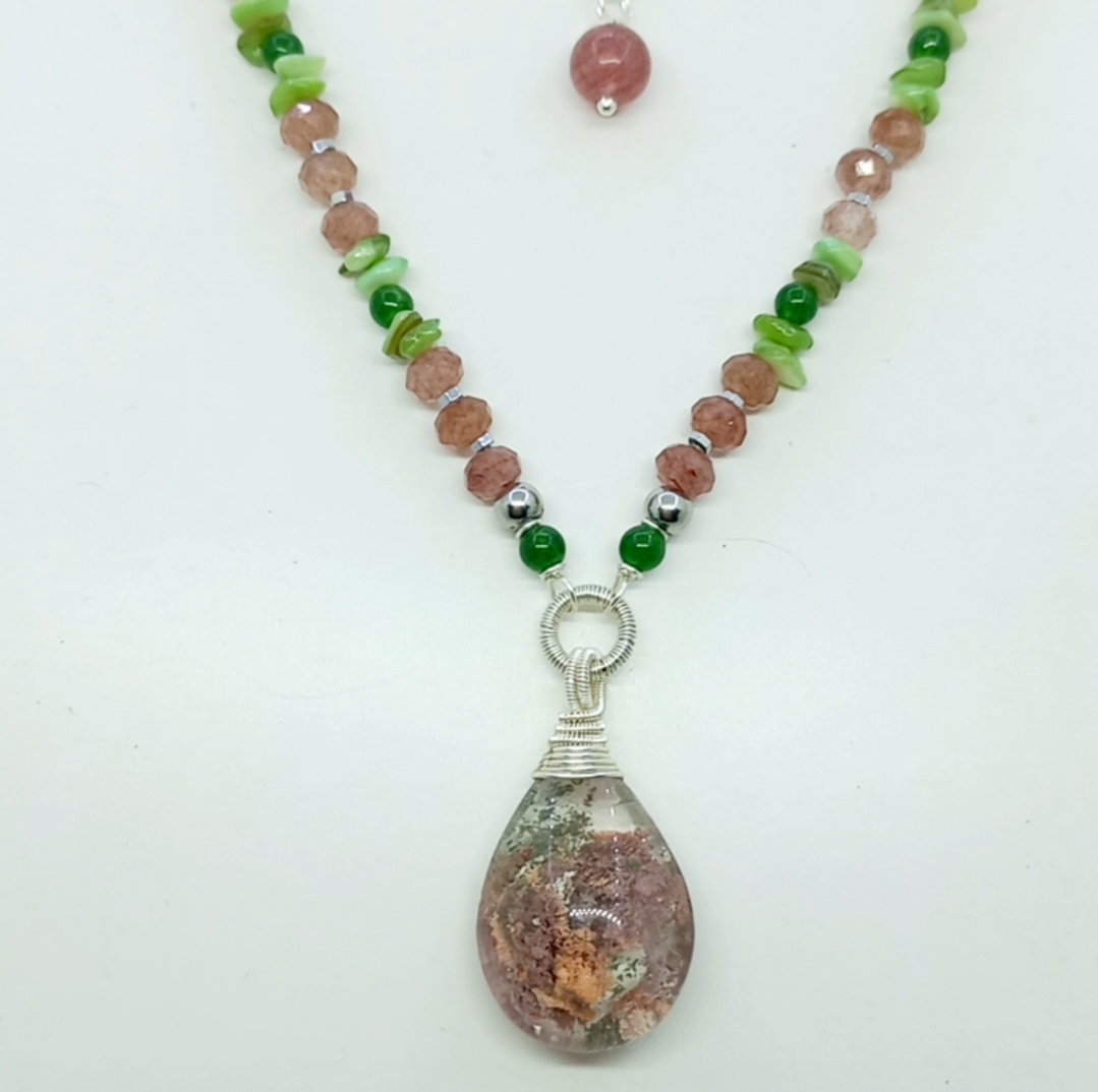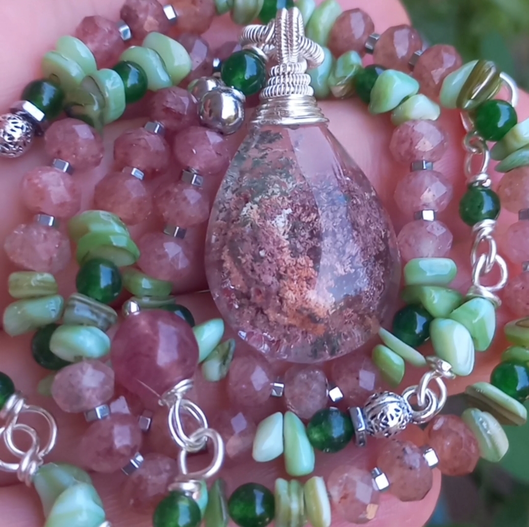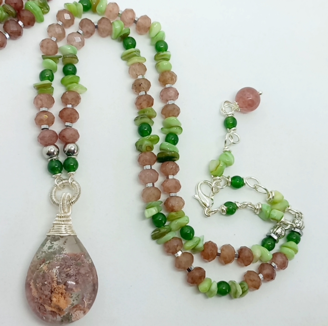 Garden Kuvars çilek Kuvars Sedef el yapımı kolye
