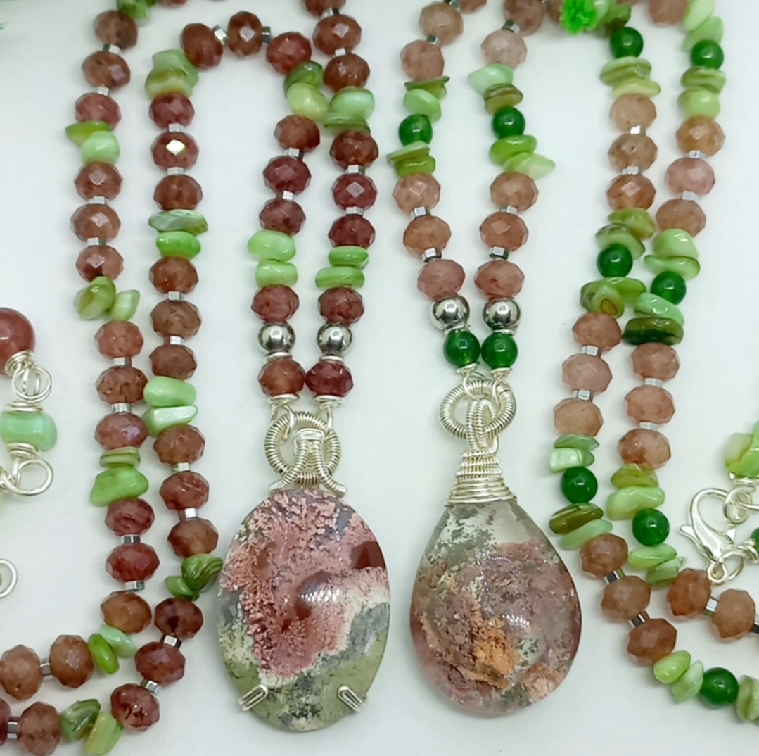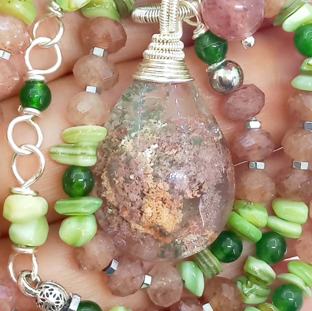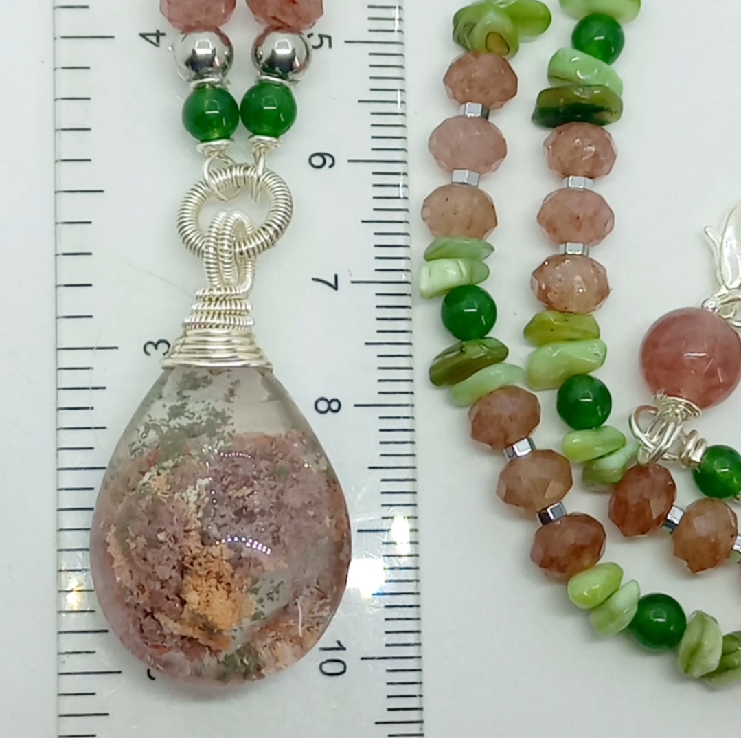 Garden Kuvars çilek Kuvars Sedef el yapımı kolye
