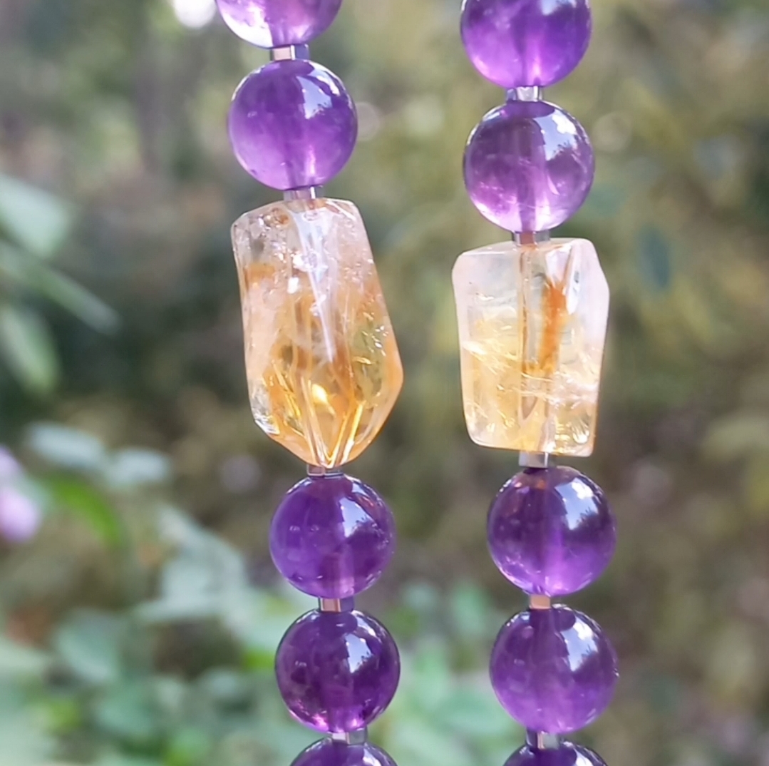Labradorit Ametist Sitrin Hematit el yapımı kolye