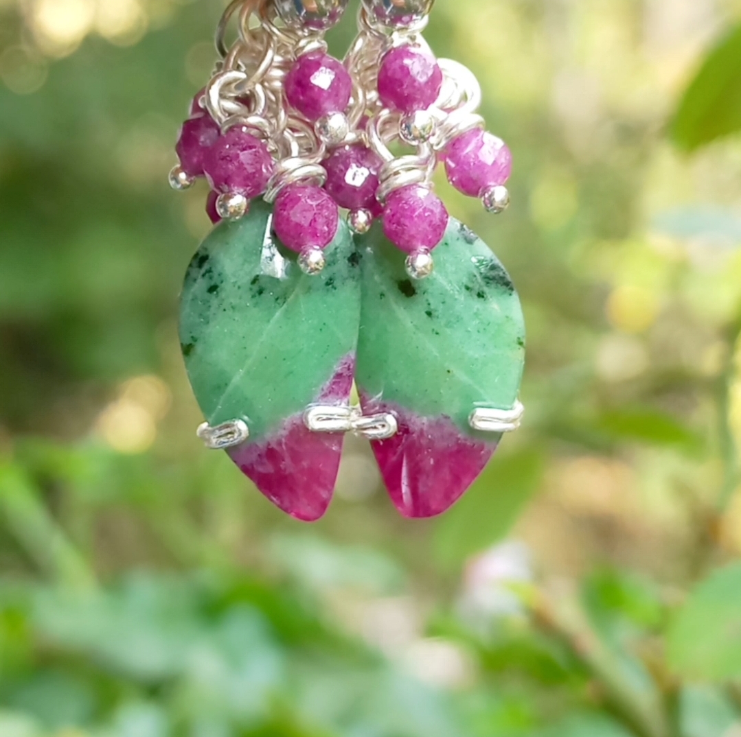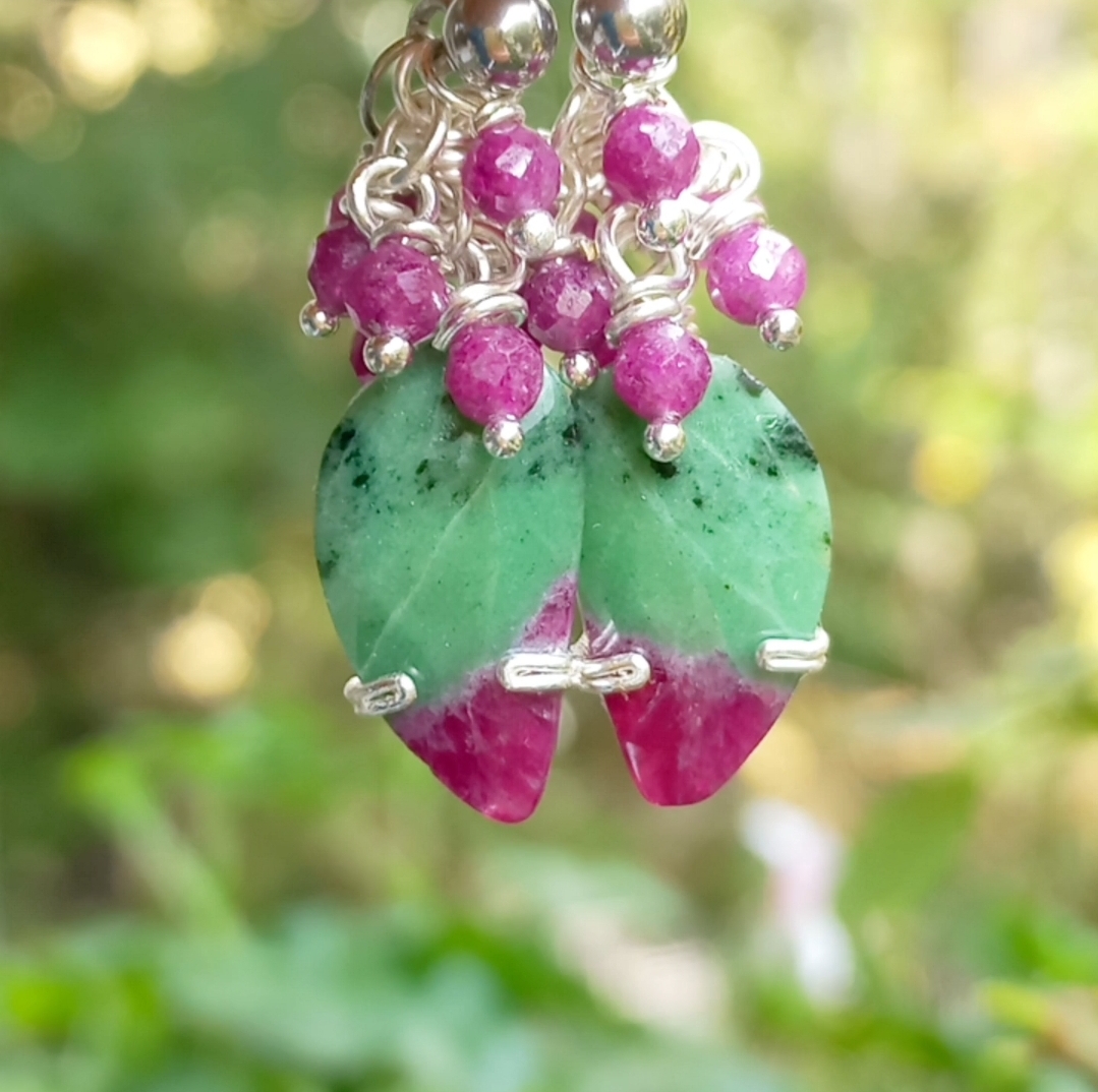 Rubyzoisit Yakut çelik aparatlı el yapımı küpe