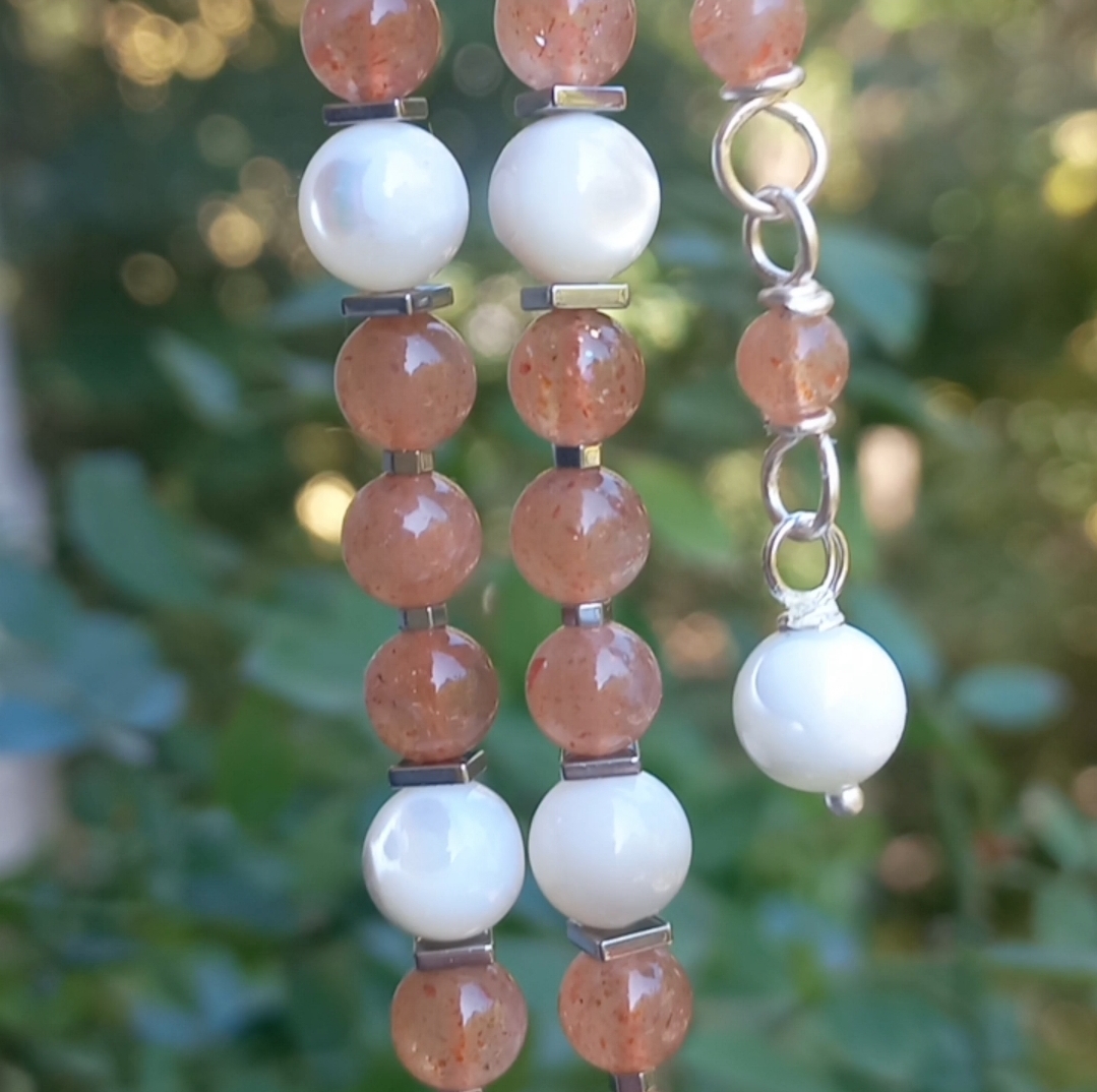 Scolocite Güneş taşı Sedef Hematit el yapımı kolye kardeş